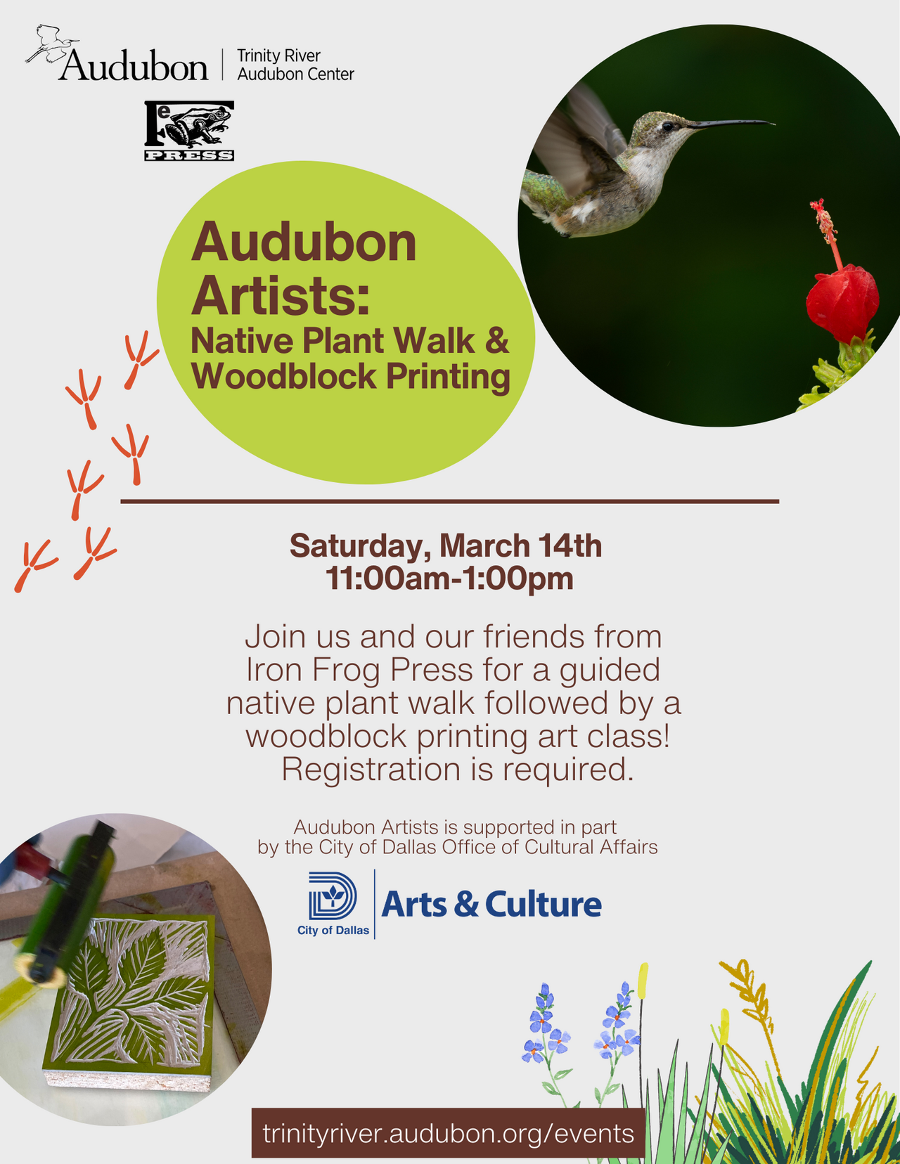 Join us and our friends from Iron Frog Press for a guided native plant walk followed by a woodblock printing art class! Registration is required.